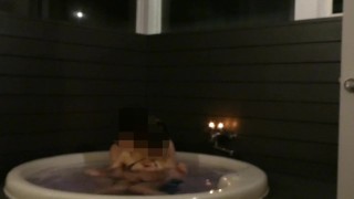 Thick Japanese wife gets passionate sex from hubby who caught her fucking a dildo in the hot tub *^*